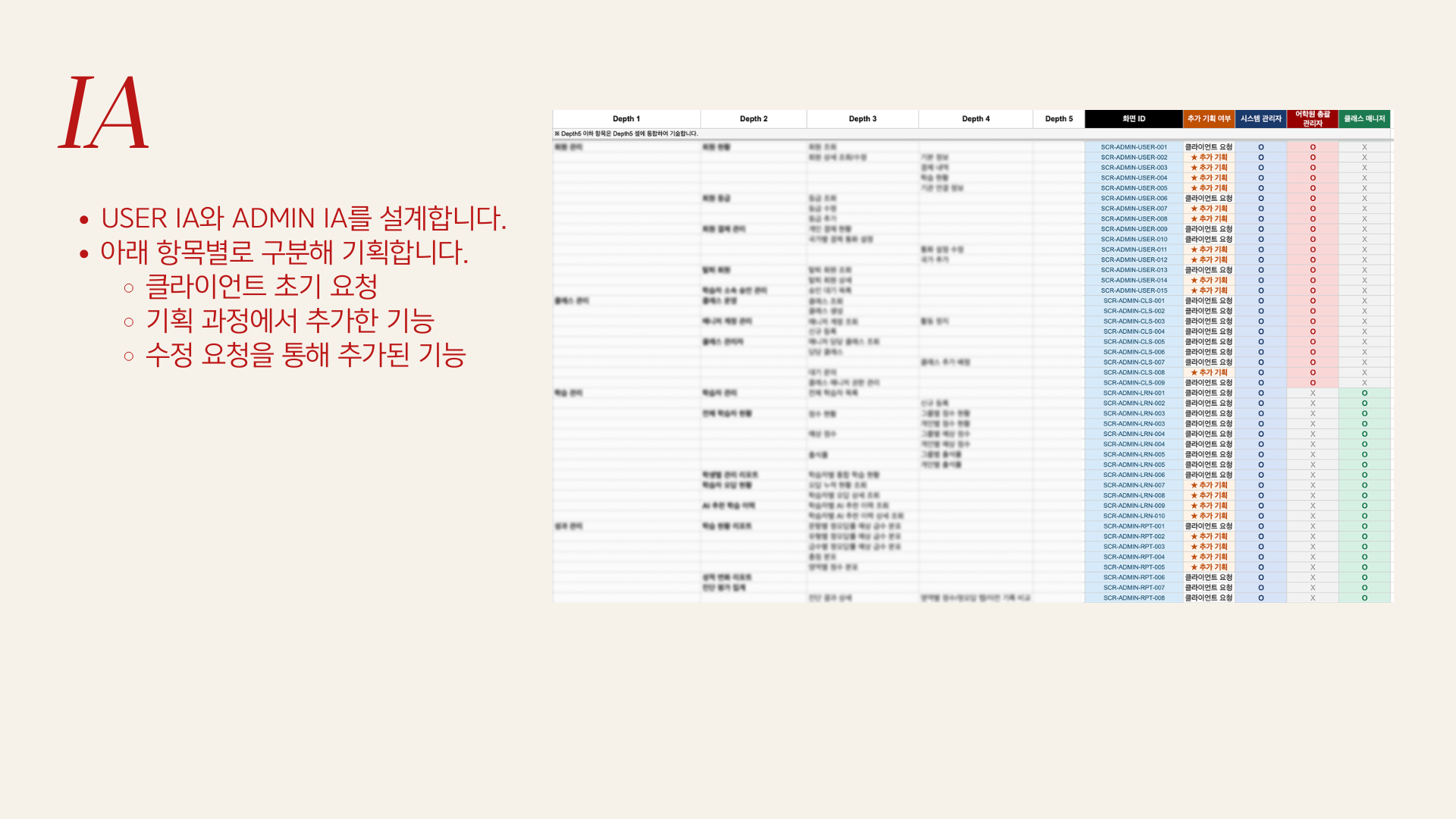 - 시스템 구성: Admin(백오피스) + User(학습자) 이중 구조