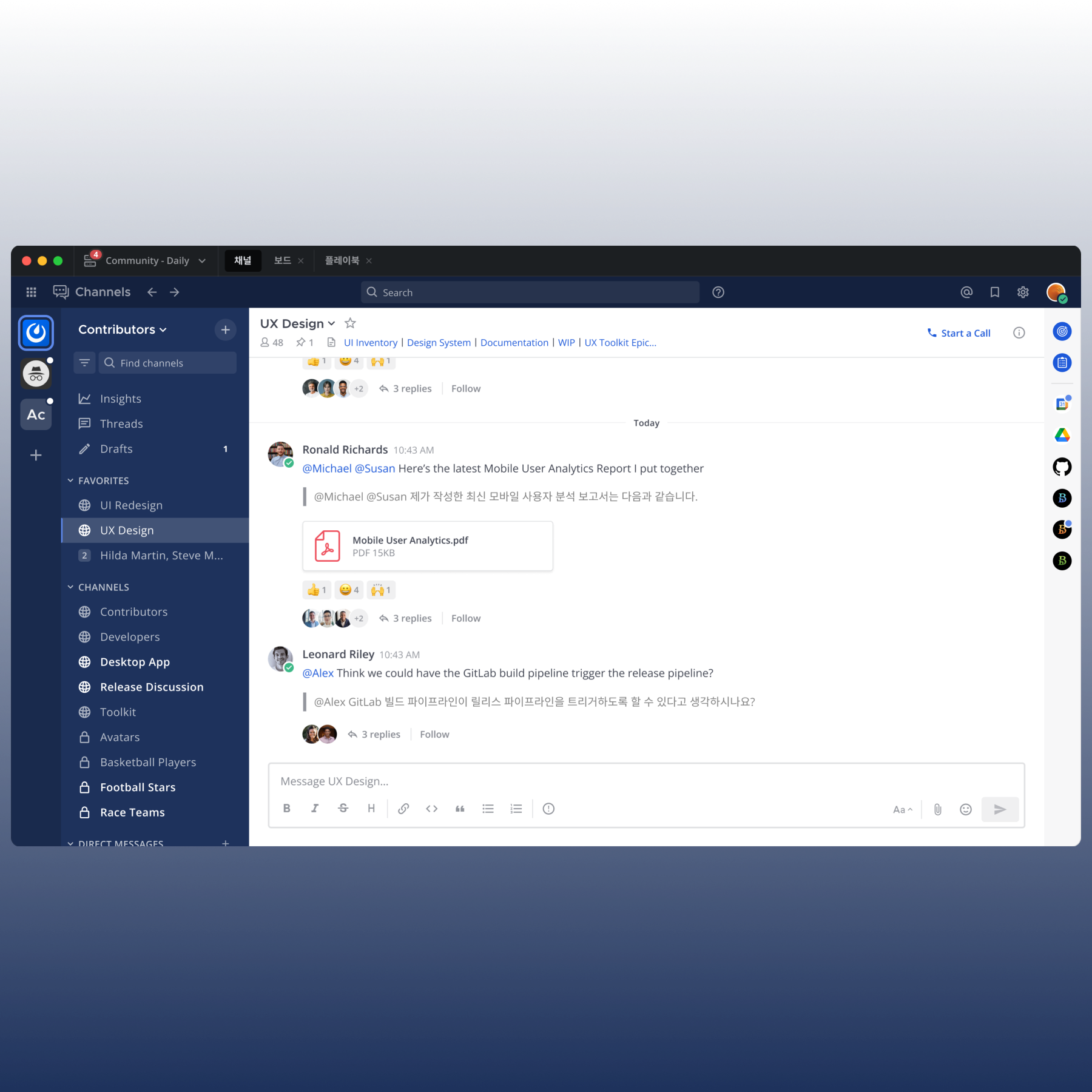 특이사항: 채팅 번역, 온라인 음성 회의, 실시간 다대다 채팅