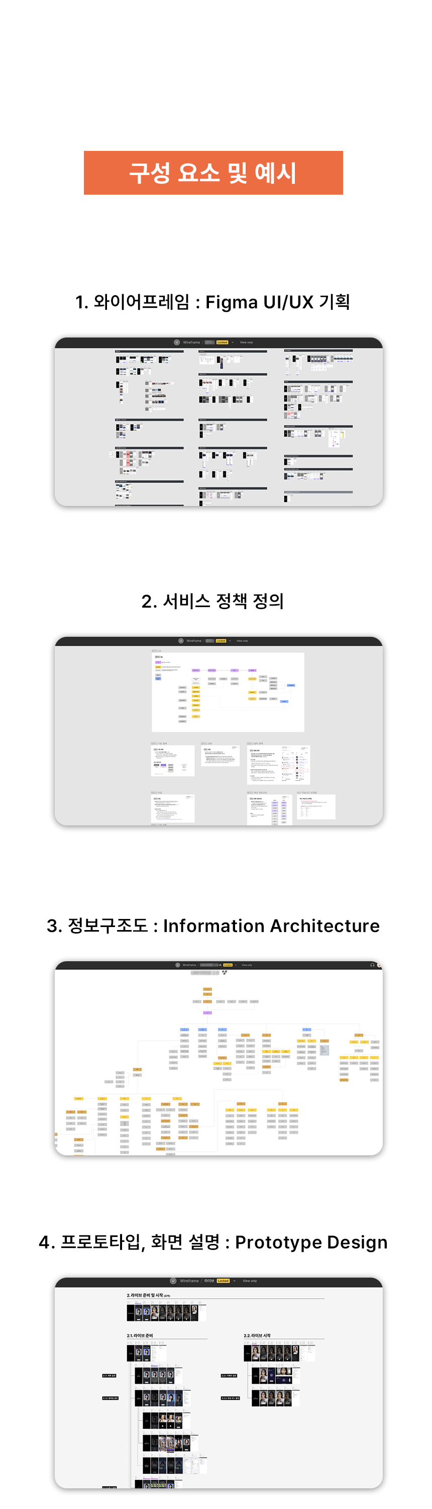- 서비스 기획, UX 기획, 사용자 시나리오 설계, WBS﹒IA﹒정보구조도 설계