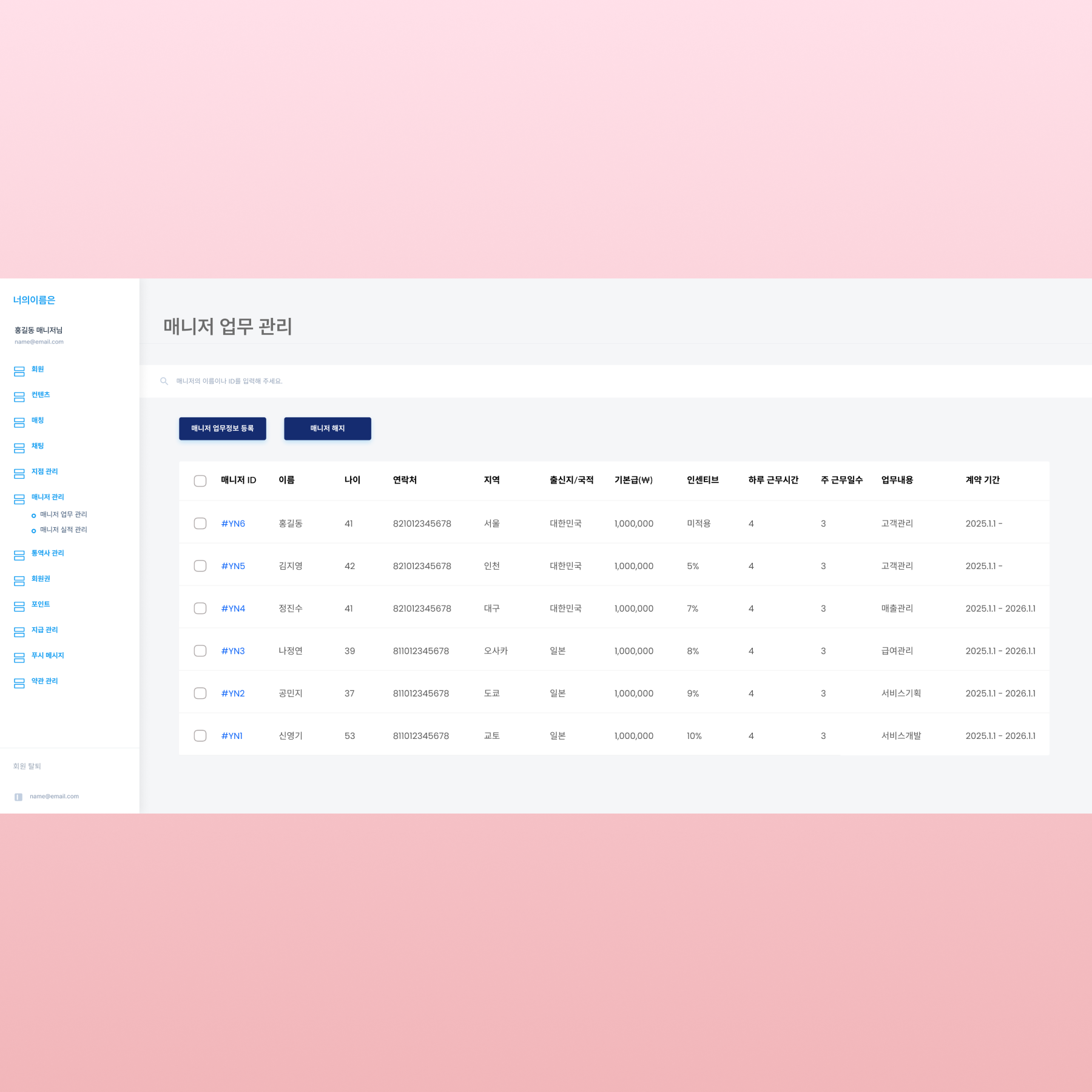 특이사항: 한국 및 일본 글로벌 프로젝트