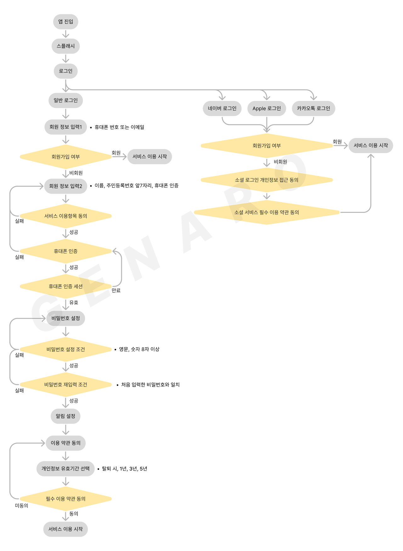 회원가입을 해야 로그인을 할 수 있겠죠. 모든 서비스에 회원가입이 필요한 것은 아닙니다. 회원정보를 저장할 필요가 있는 서비스에만 회원기능을 포함해야 합니다. 회원시스템을 넣게 되면 DB 관리도 해야 하고, 개인정보 약관 이슈도 있어서 관리할 영역이 많아지기 때문이에요. 다음은 회원가입과 회원탈퇴 서비스를 기획하며 고려해 보면 좋은 사항입니다.